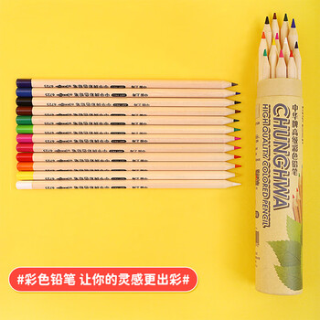 中华6725-12原木三角彩色铅笔儿童绘画开学季国庆出游礼物12色油性彩铅六一儿童节国庆出游礼物