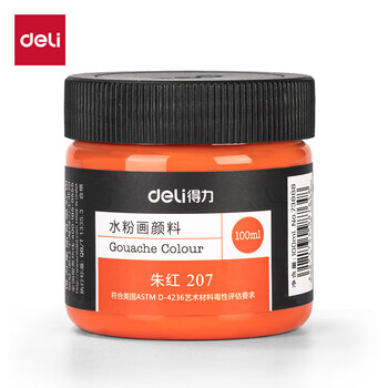 得力(deli)水粉颜料朱红100ml大容量瓶装绘画彩绘水粉画成人学生儿童艺考初学者73888可水洗手搓颜料