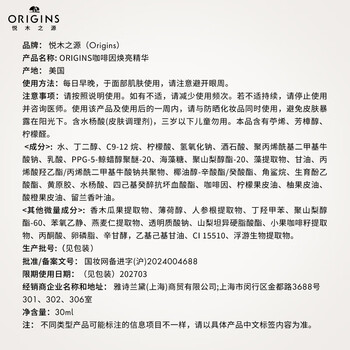 悦木之源(Origins)咖啡因小橘瓶发光精华30ml提亮保湿透亮果酸细毛孔生日礼物送女友