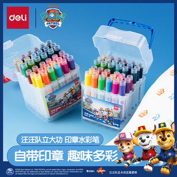 得力(deli)36色易清洗水彩笔汪汪队立大功可水洗印章头学生儿童绘画笔涂鸦画画公主粉女孩儿童礼物速写水彩笔