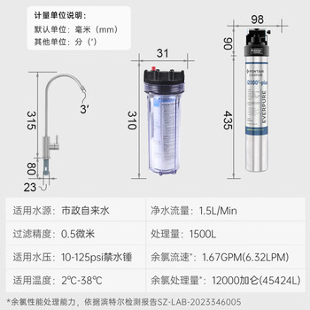 爱惠浦(Everpure)Insurice PF Single I20002净水器 无桶大流量-额定净水量1500L 矿物质水净水机