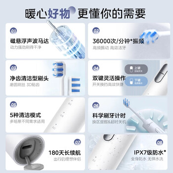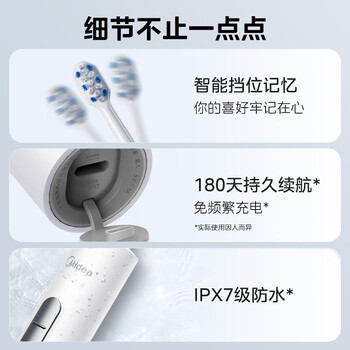 美的(Midea)电动牙刷S1PX白色成人/学生 180天长续航 5种模式 磁悬浮声波马达男女士专用情侣生日节日礼物推荐