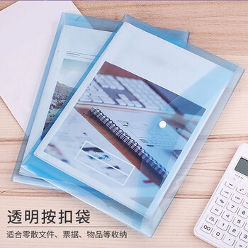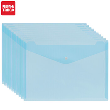 天章 (TANGO)A4文件袋透明按扣袋蓝色10个装A4资料袋学习资料收纳袋档案袋财务发票袋办公室文具用品