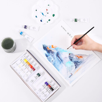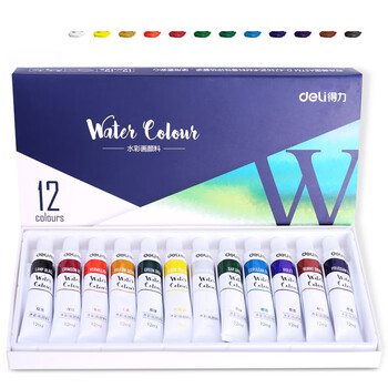 得力(deli)水彩颜料12色12ml大容量画画美术专用便携专业级学生儿童绘画彩绘套装便携73850速写