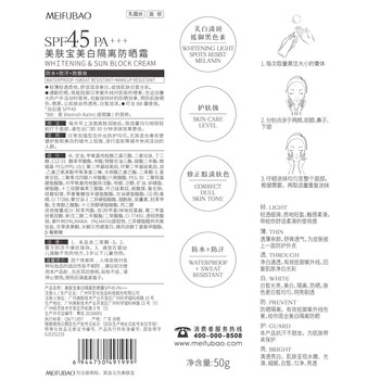 美肤宝美白隔离防晒霜SPF45 PA+++ 50g 新老包装随机发,以收到实物为准