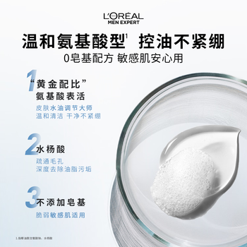 欧莱雅男士专用水能控油洁面膏100ml洗面奶氨基酸去角质护肤品