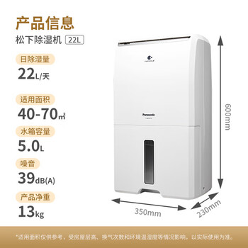 松下(Panasonic)除湿机/抽湿机 除湿量22升/天 40㎡家用卧室客厅地下室除菌防霉回南天除湿器F-CYT45XC