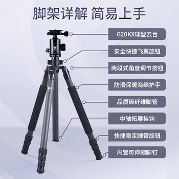 思锐(SIRUI)三脚架 R2204+G20KX 碳纤维含云台尼康佳能单反相机三角架 单反相机三脚架 专业稳定 微单通用