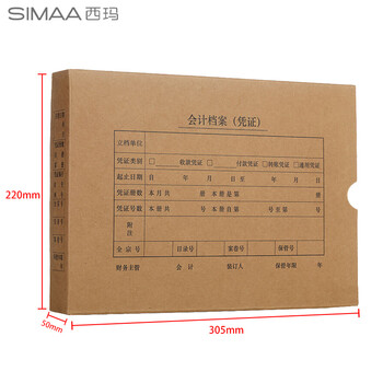 西玛A4会计凭证盒 单封口进口674g牛卡纸305*220*50mm 5个/包a4记账凭证纸会计档案装订盒6502