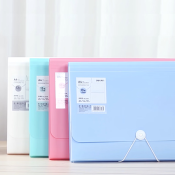 得力(deli)13格A4扣绳文件包文件夹 多层分类收纳 风琴包学生试卷册 大容量资料收纳米白5238