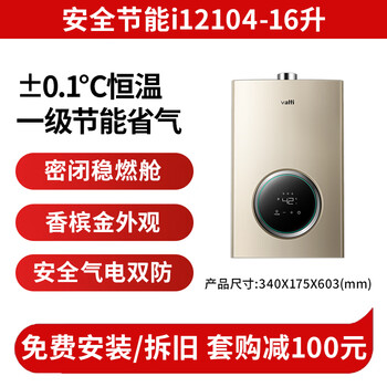 华帝【安全节能i12104】16升一厨多卫水伺服级恒温速热低水压启动 燃气热水器天然气 上门安装