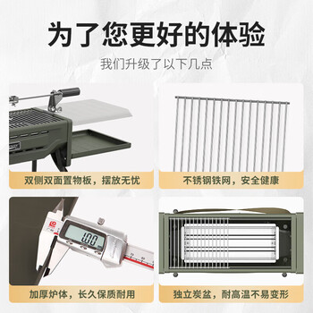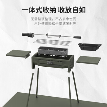 烧烤世家 户外烧烤炉 烧烤架 加厚炉体叉烤鱼鸡烤串一体收纳 不锈钢便携式