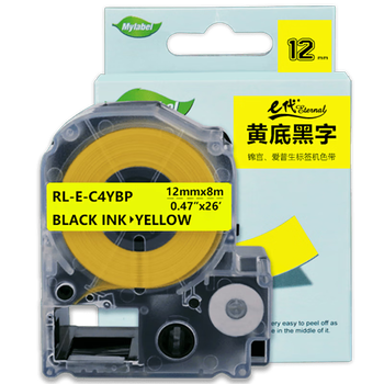 e代标签色带适用爱普生12mm黄底黑字标签纸LW-K400标签机600P 1000P C410 Z700 Z900锦宫SR230CH