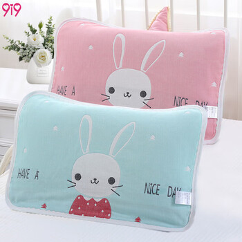 9i9宝宝枕巾纯棉婴儿童纱布2条装四季透气吸汗吸湿柔软可爱A142兔子