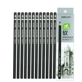 得力(deli)58120美术素描炭笔石墨铅笔软款12支盒装专业绘画手绘素描彩绘软款画画