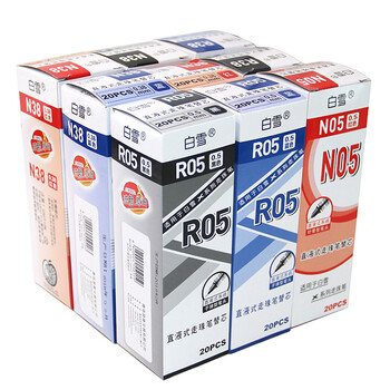 白雪(snowhite)R05黑色子弹头直液式走珠笔替芯0.5mm大容量笔芯x系列通用笔芯20支/盒