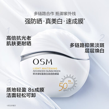 欧诗漫(OSM)轻盈美白高倍防晒霜50g(SPF50+,PA++++)*1