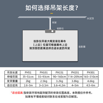 思影(CINE)投影仪吊架吊顶支架加厚伸缩挂架爱普生明基索尼松下家用商用投影机吊架1.5米(90-160cm)白色