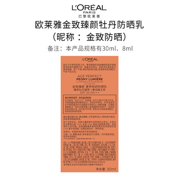 欧莱雅金致臻颜奢养粉妍防晒乳30ml SPF35PA+++金致防晒牡丹防晒霜隔离