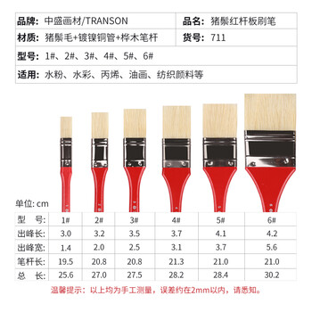 中盛画材6#长杆猪鬃宽笔刷油画刷底纹笔刷猪鬃排刷底纹板刷子丙烯画笔水粉笔美术手绘画墙绘美术写生