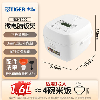 虎牌(TIGER)进口迷你小型电饭煲家用 1-2人份 星月白 JBS-T55C-WM 1.6L