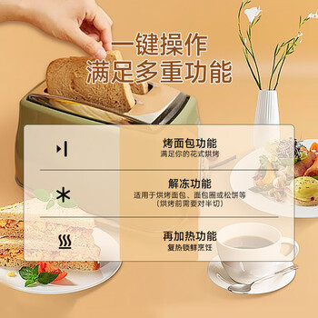 德龙(Delonghi)面包机 复古家用小型吐司机烤面包片 加热解冻三明治早餐多士炉 CTO2003.VGR 橄榄绿 38节礼物