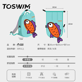 TOSWIM拓胜儿童游泳包干湿分离男女防水收纳包双肩减负背包 胡萝卜鱼
