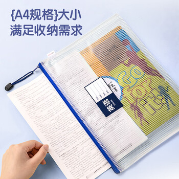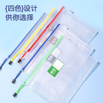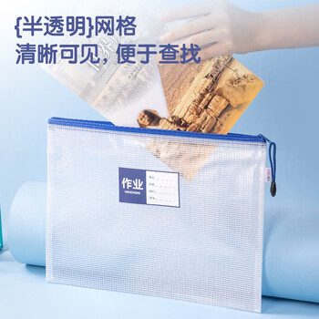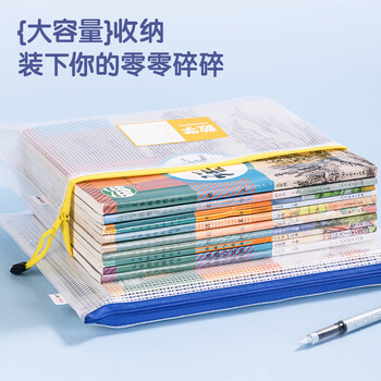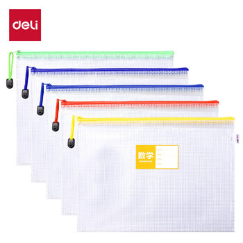 得力(deli)A4科目分类拉链袋防水笔袋 票据试卷收纳 透明网格文件资料收纳 5只装 33124