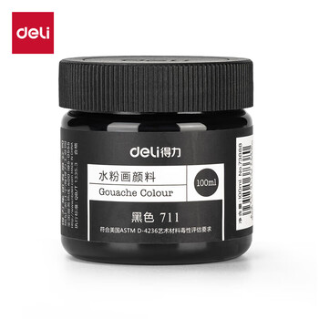 得力(deli)水粉颜料黑色100ml大容量罐装画画美术专用水粉画绘画彩绘艺考初学者73888可水洗手搓颜料