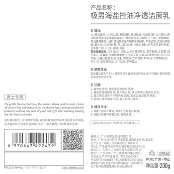 极男海盐净颜控油洁面乳200g