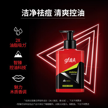 高夫净源控油祛痘150ml洁面液洗面奶 男洁面护肤 控油 祛痘