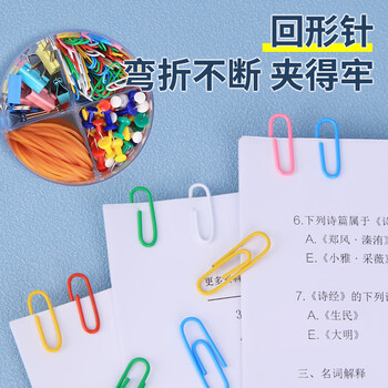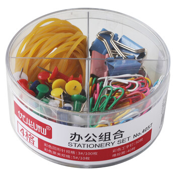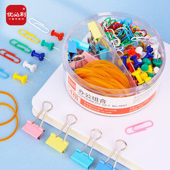 优必利 组合套装长尾票据夹/彩色燕尾夹铁夹子 组合装:图钉/回形针/票夹/橡皮筋 4057