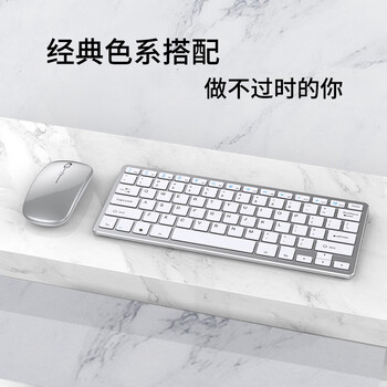 吉选WKM200可充电无线键盘鼠标套装 办公超薄便携键鼠套装 笔记本电脑台式家用键盘鼠标 银白