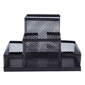 递乐 笔筒时尚4格金属多功能网状办公收纳整理组合笔盒笔座金属网格笔筒 2467 黑色
