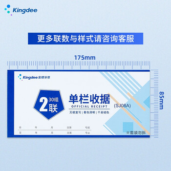 金蝶(kingdee)二联单栏收据单 无碳复写收款收据 打印手写收据单样本单54K 175*85mm 30组/本 10本/包