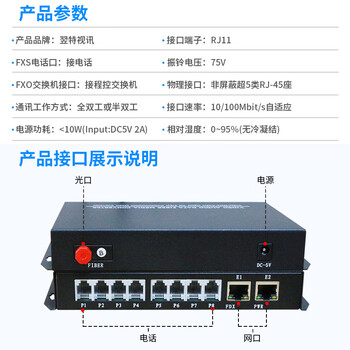 翌特视讯(ETV) ETV-8P2E 电话光端机 8路话+2路网PCM语音光端机光纤收发器延长器FC/SC接口
