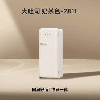 HCK哈士奇大吐司281升单门复古冰箱「奶茶色」一级能效风冷客厅小冰箱干湿分储纤薄BC-130GGA