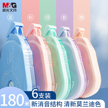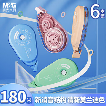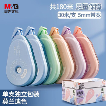 晨光(M&G)180米学生盒装修正带 消音结构课堂专用改正带莫兰迪系列高颜值隐形涂改带 30m*6支装