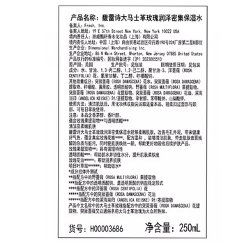 Fresh馥蕾诗大马士革玫瑰润泽密集保湿水250ml护肤品 生日礼物送女友