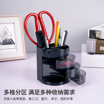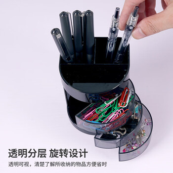 天章【开学必备】天章办公(TANGO)三层多功能办公笔筒/桌面办公收纳盒/黑色