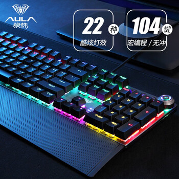 狼蛛(AULA)F2088 机械键盘 有线键盘 游戏键盘 104键背光键盘 宏编程 电脑键盘 黑色 黑轴 精英版