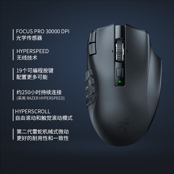 雷蛇(Razer) 那伽梵蛇V2极速版 无线鼠标 2.4G 蓝牙 MMORPG游戏鼠标 19个编程按键 30000DPI