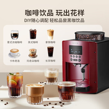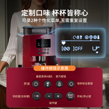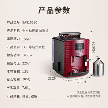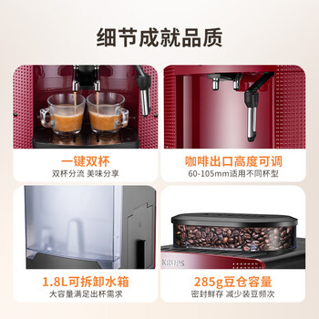 krups德国克鲁伯咖啡机家用/办公室全自动咖啡机意式浓缩咖啡研磨一体机欧洲原装进口EA815580(红色)
