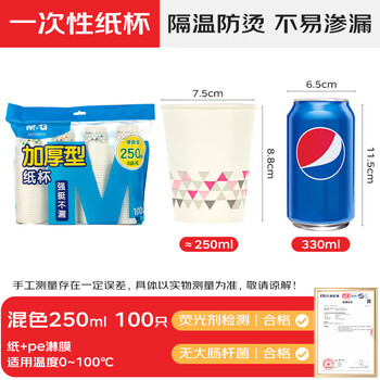 晨光(M&G)一次性纸杯 杯子/水杯 100只/袋250ml加厚家用办公喝水杯ARC92515