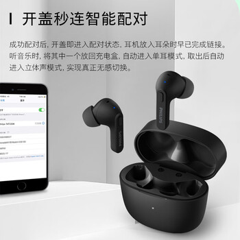 飞利浦(PHILIPS)真无线蓝牙耳机无线运动游戏音乐耳机降噪CD级高清音质苹果华为小米手机双11双十一礼物TAT2206黑