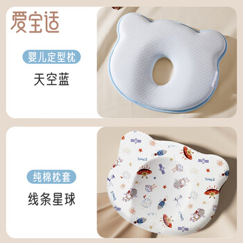 爱宝适婴儿定型枕0-1岁新生儿枕头纯棉枕套透气定型枕宝宝枕头蓝色S219