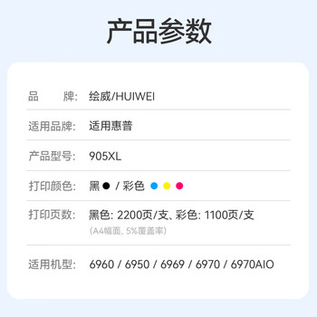 绘威 905XL墨盒 适用惠普6960墨盒 6950 6969 6970 hp officejet pro 6960打印机墨盒 905墨盒【四色套装】