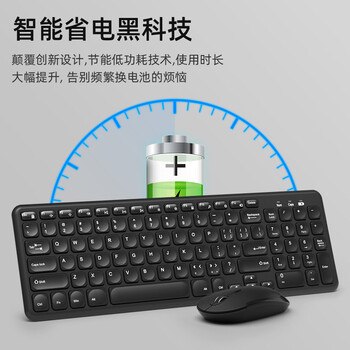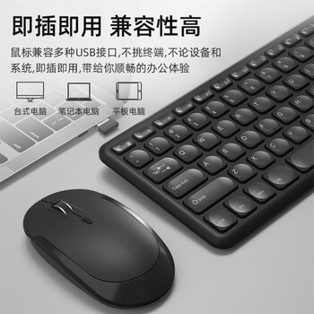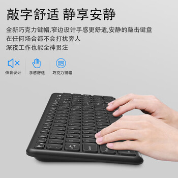 B.O.W航世 HW256 无线键盘鼠标套装 办公键鼠套装96键 超薄便携 防泼溅 电脑键盘 笔记本键盘 黑色