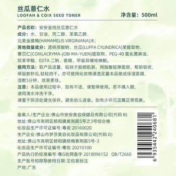 安安金纯爽肤水丝瓜薏仁水500ml*2瓶 补水保湿护肤