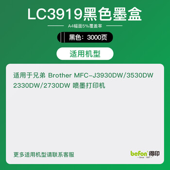 得印LC3919BK黑色墨盒大容量适用兄弟MFC-J3930DW 3530DW 2330DW 2730DW打印机墨盒